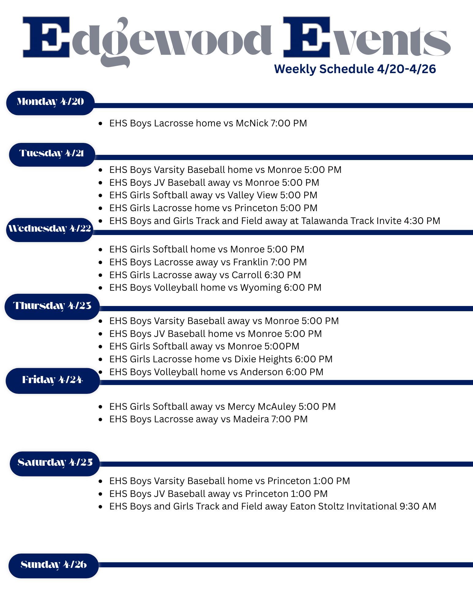 Home of the Edgewood Cougars, Kumler Field hosts football, soccer, and lacrosse games and track & field meets.