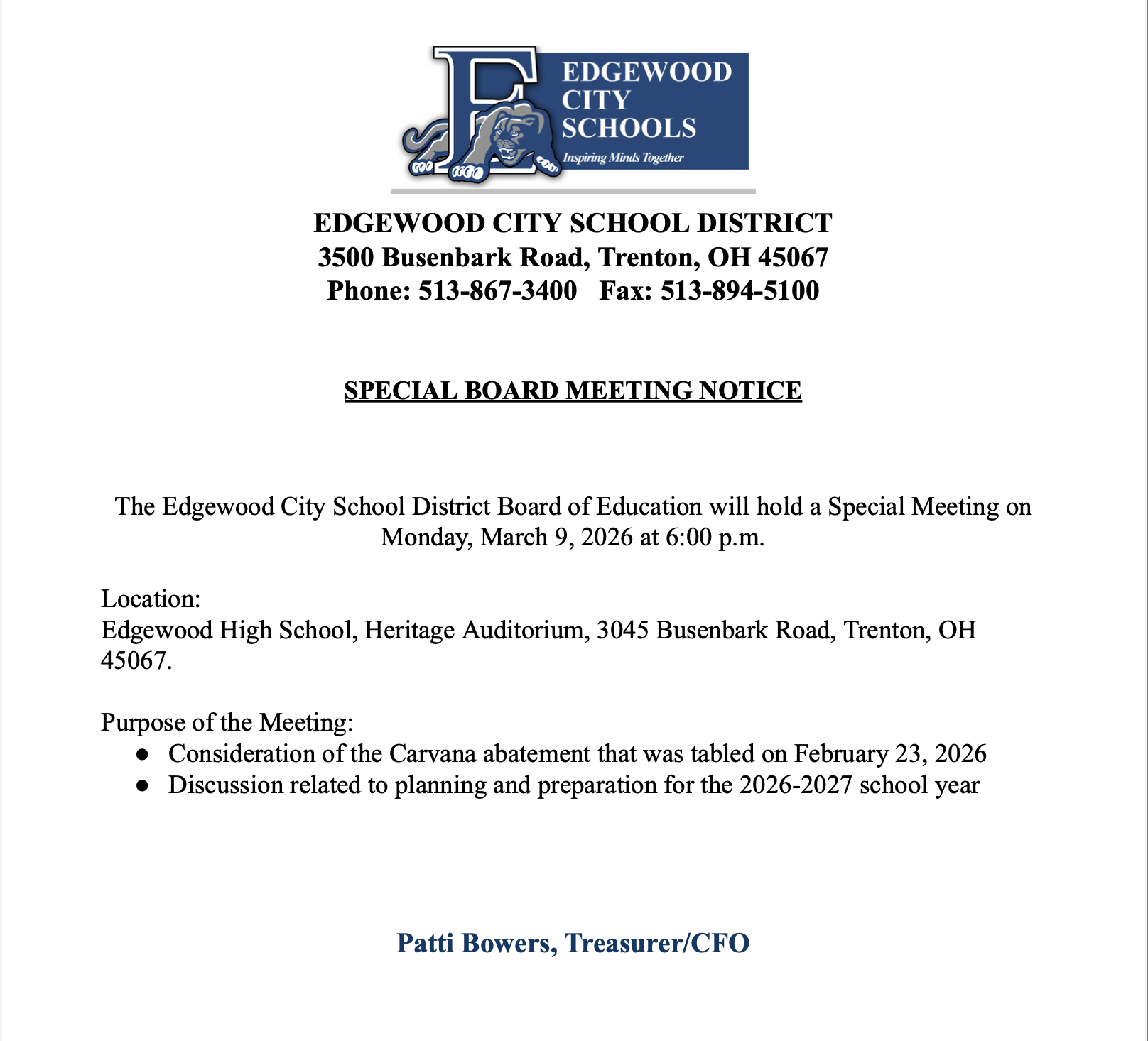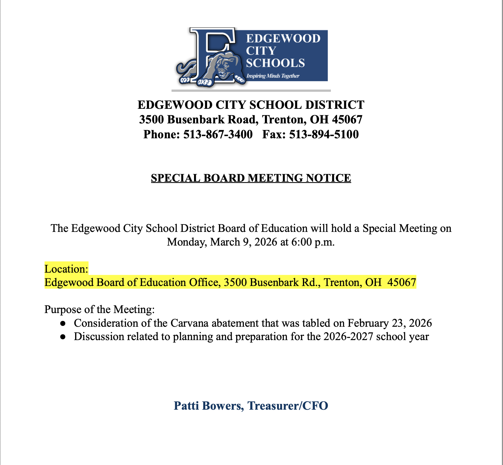 Agendas, meeting minutes, board documents, and board member info.