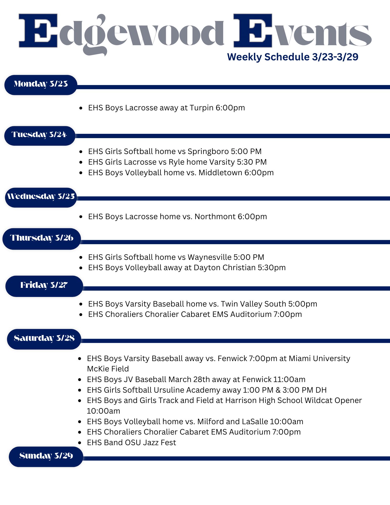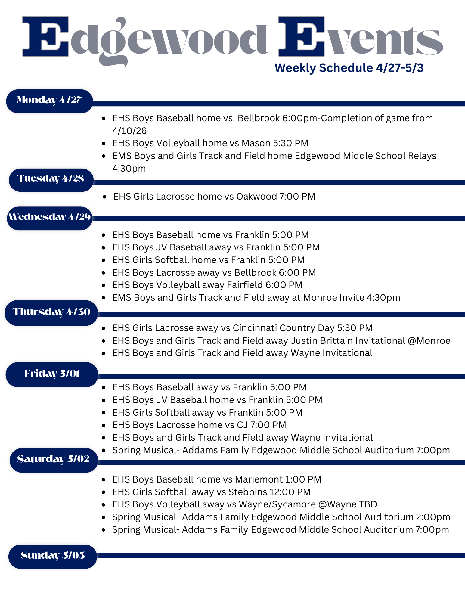 Home of the Edgewood Cougars, Kumler Field hosts football, soccer, and lacrosse games and track & field meets.